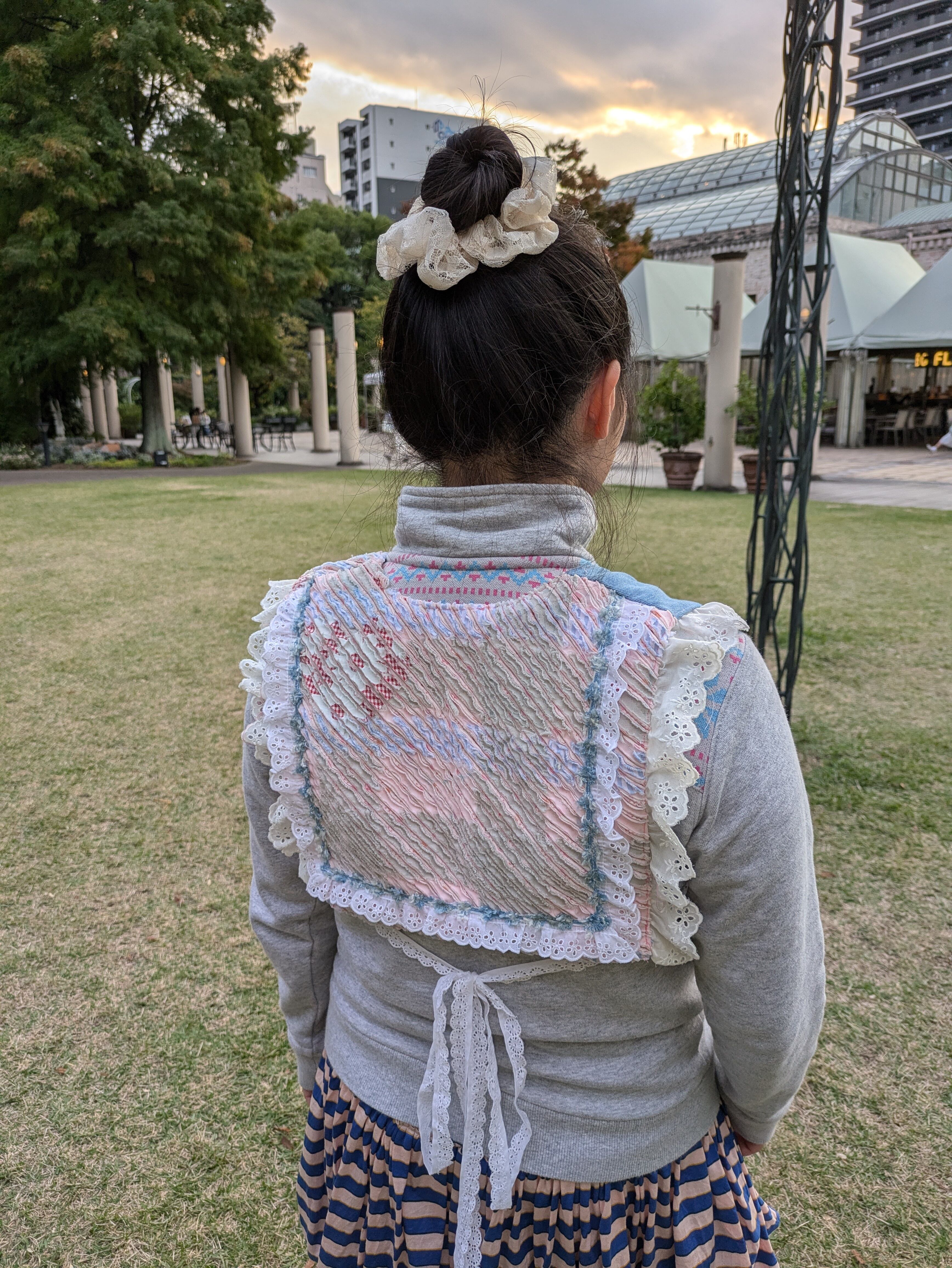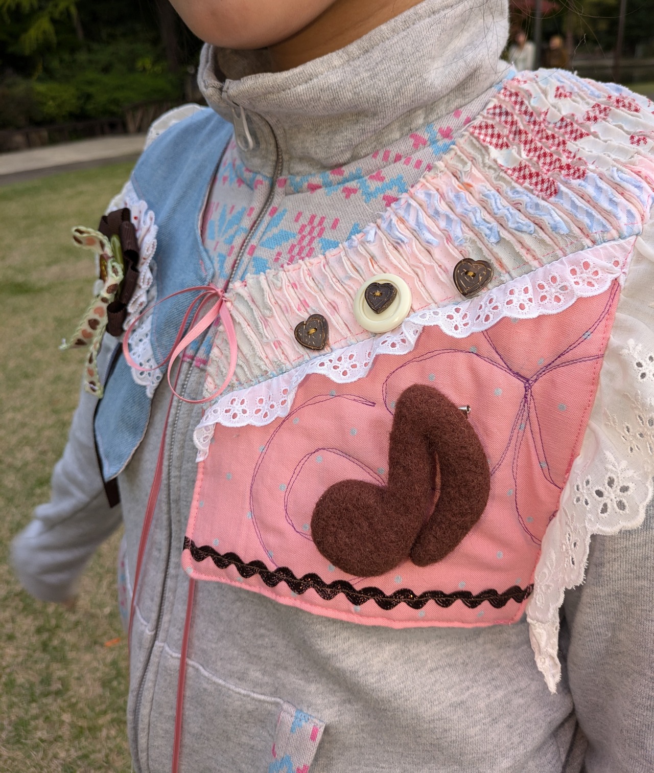 ピンクベースのスラッシュキルトにデニムとキルティングを組み合わせたショートベスト♡