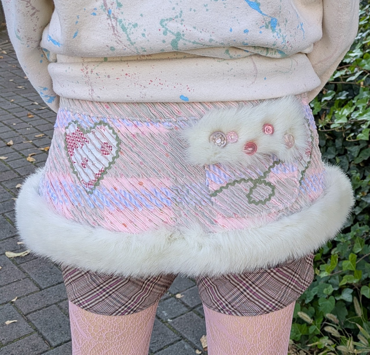 ハート柄がかわいいスラッシュキルトとふわふわのファーをたっぷり使った、冬にピッタリのミニスカートです❅.☃︎.'