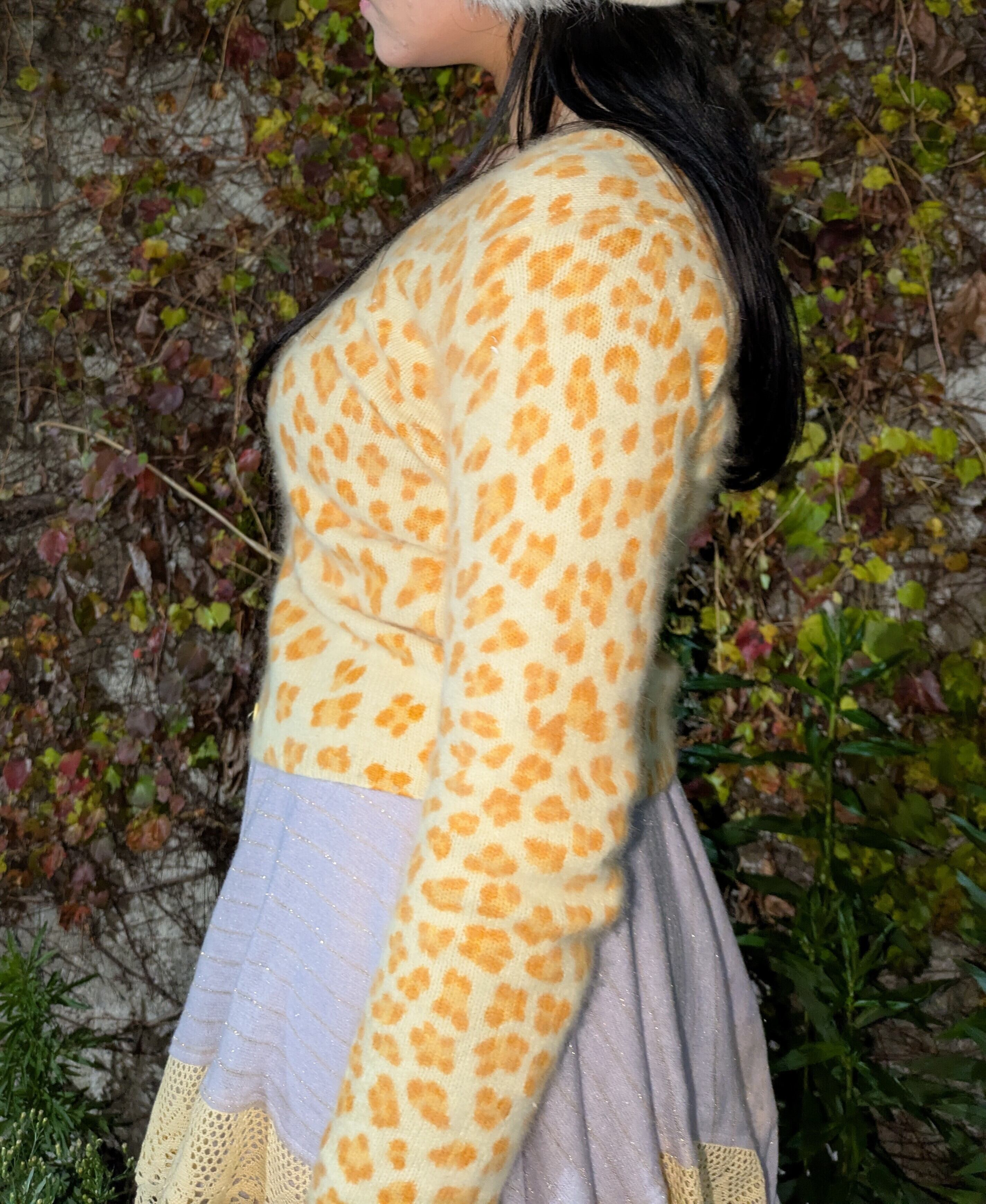 【USED】レオパード柄イエローニットカーディガンʕ•ᴥ• ʔ