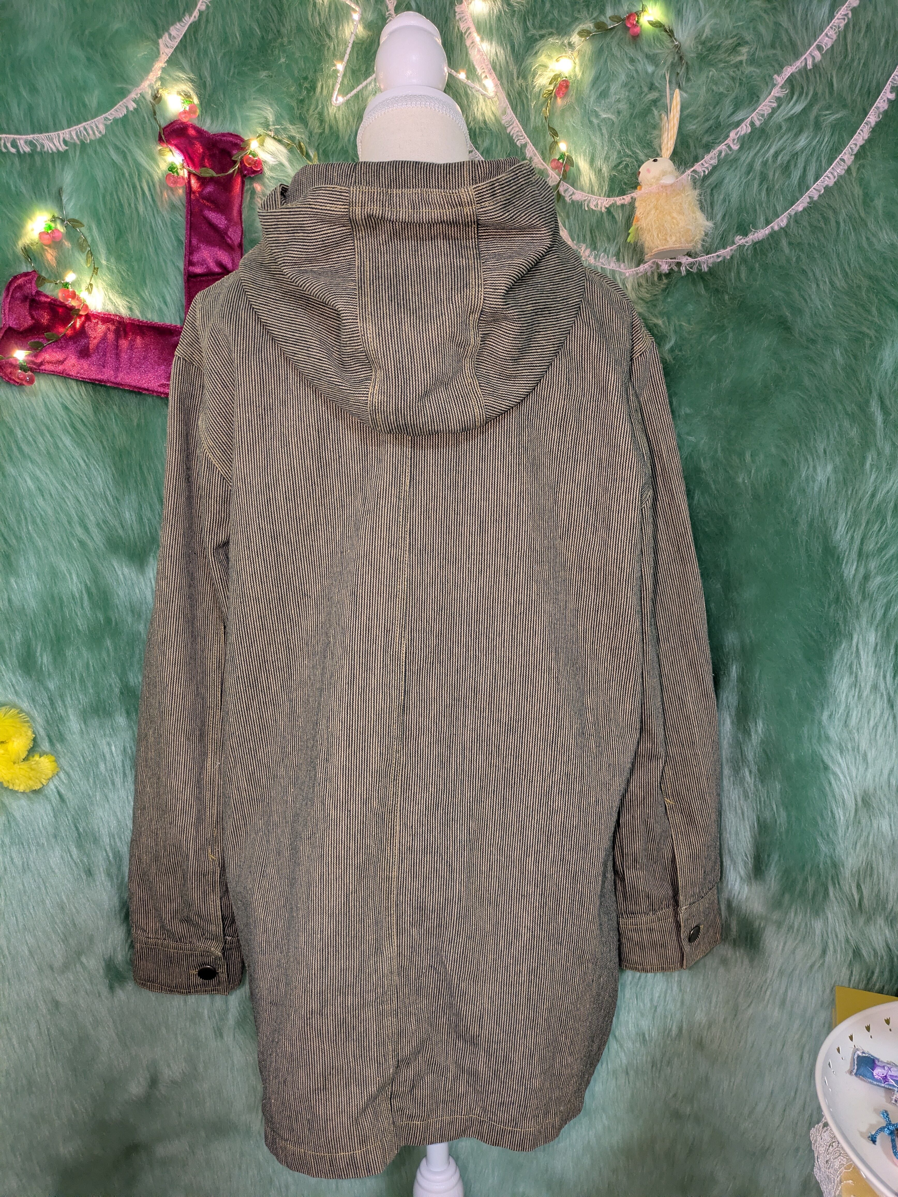黄色のステッチが可愛い、ヒッコリーデニムのフード付きジャケット♪