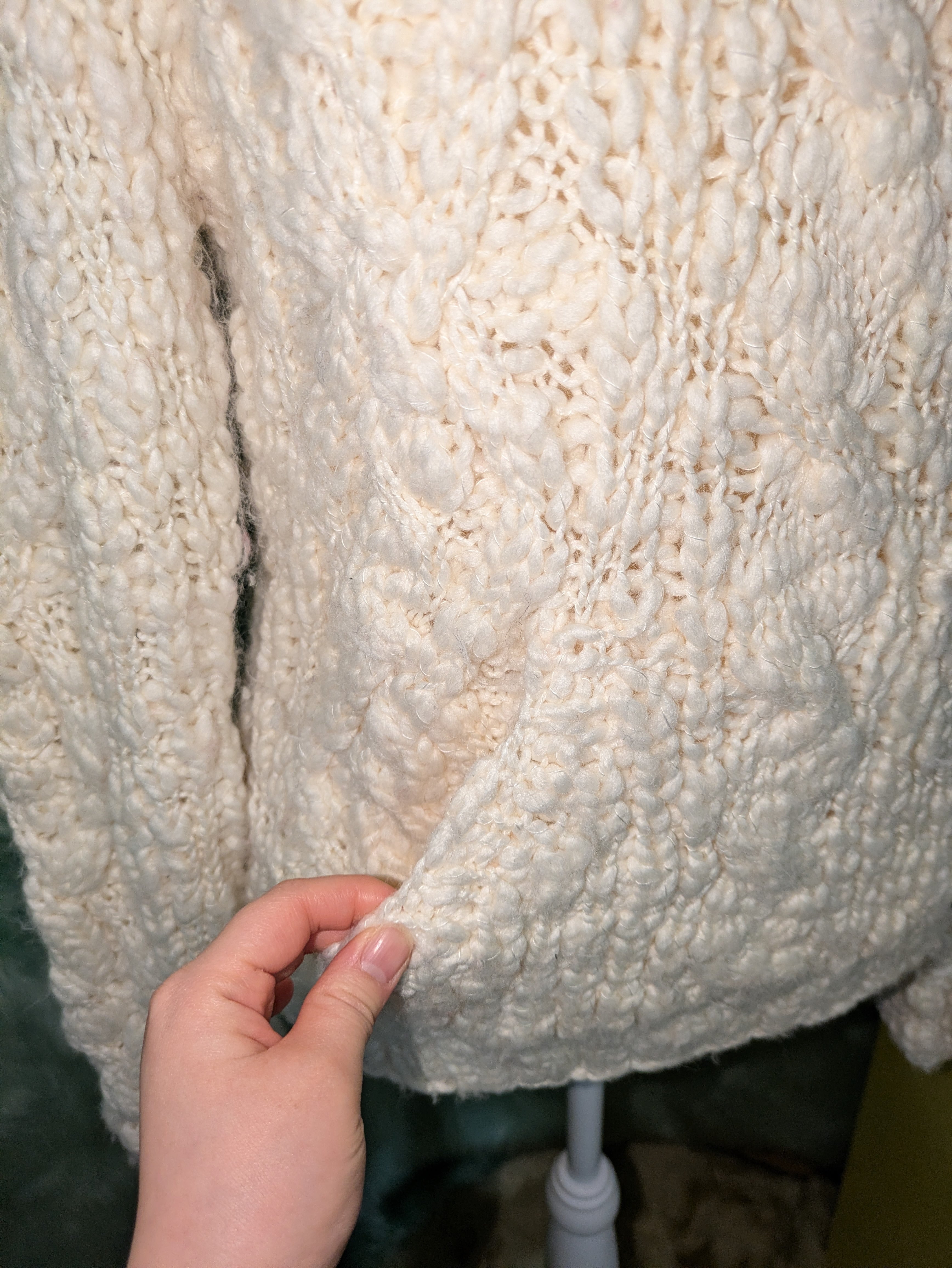 立体感のある編み模様と、やさしいアイボリーカラーが冬気分をぐっと高めてくれる一枚です♥