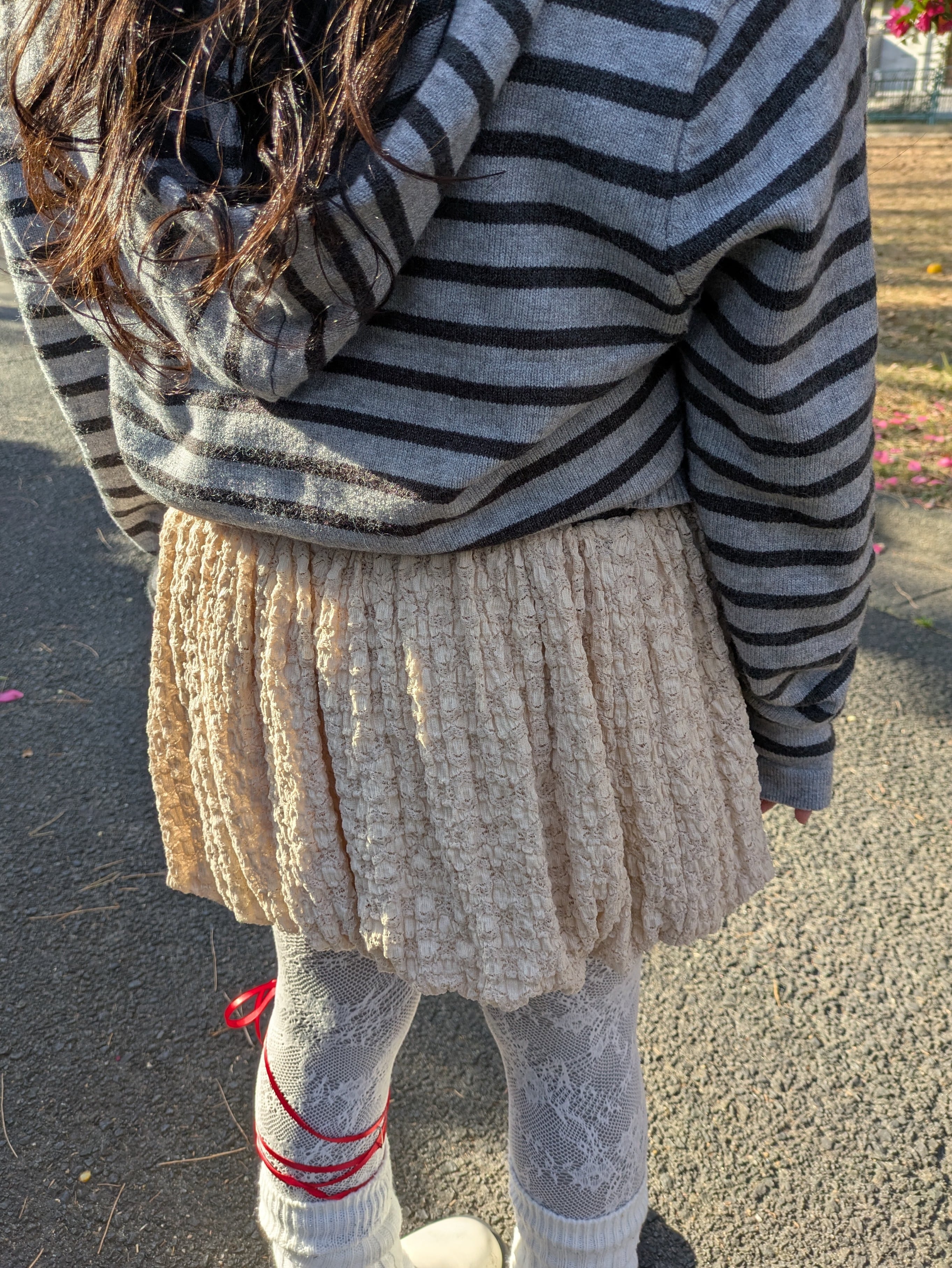 ベージュのニットレースが軽やかでコーディネートに取り入れやすいバルーンスカートです♡