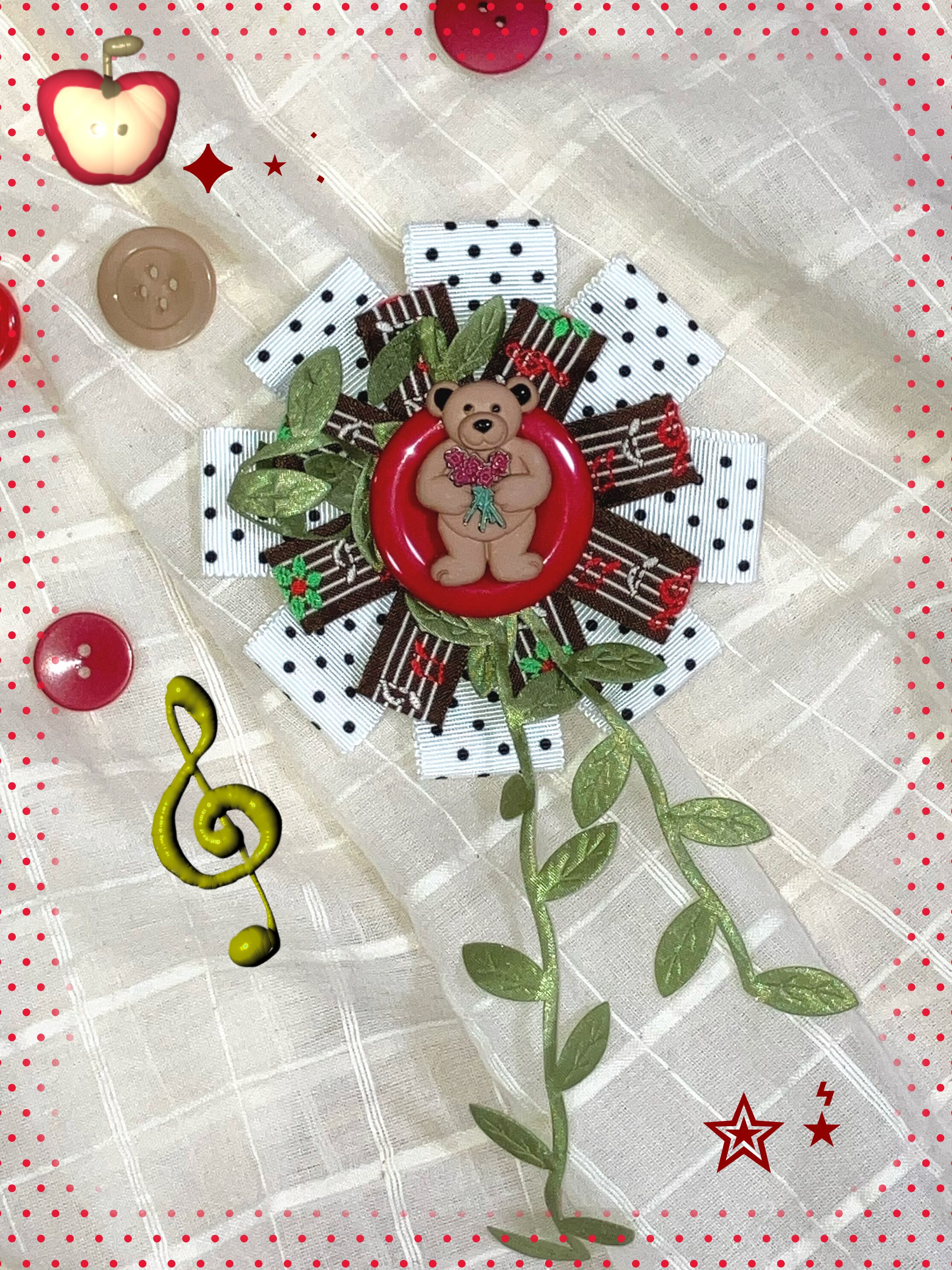 くまと葉っぱが印象的なロゼットブローチです︎^_^♪