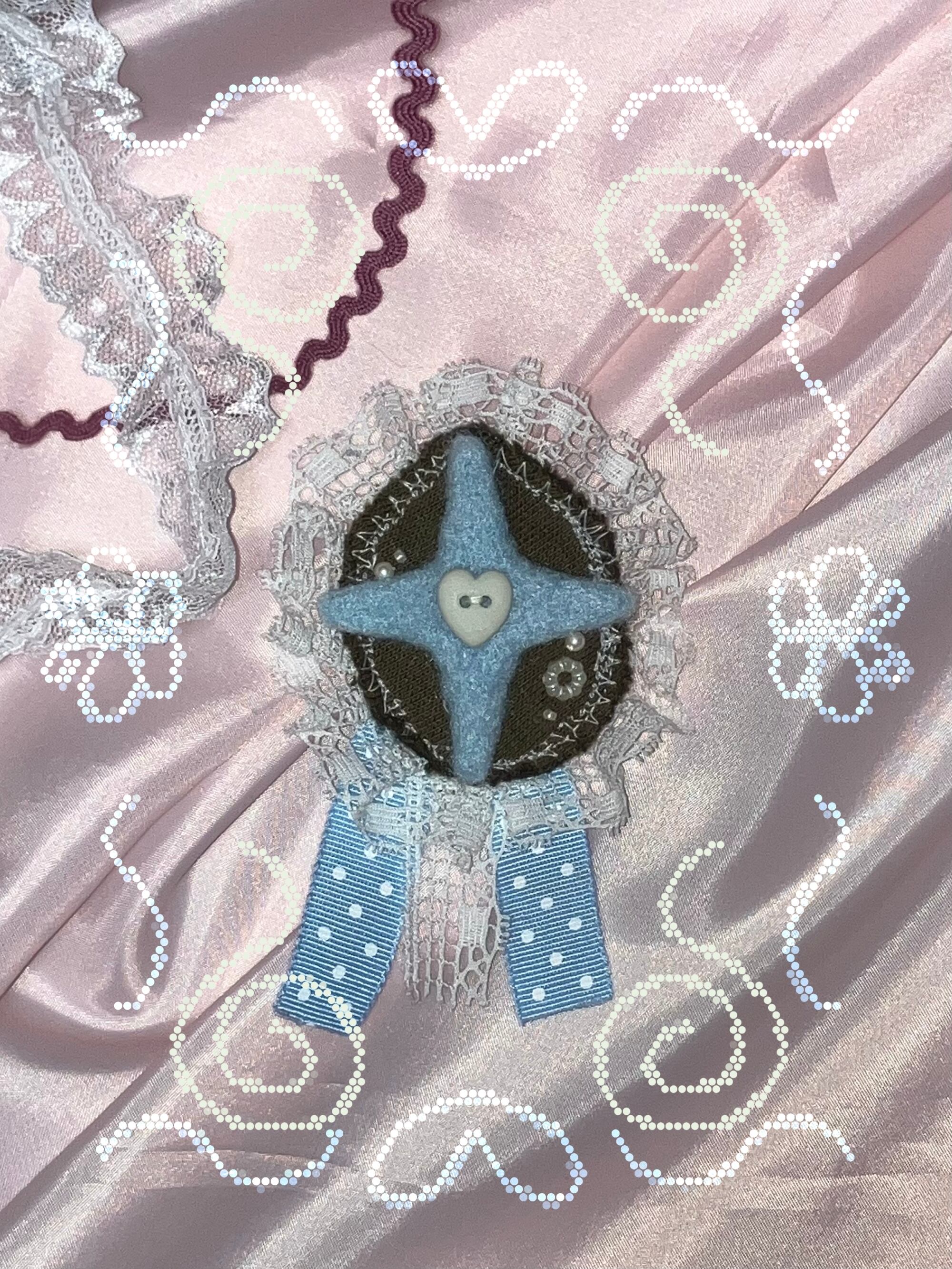ふわふわのフェルトでできた四芒星にレースやリボンを重ねたデザインで、キュートかつノスタルジックな雰囲気に◎